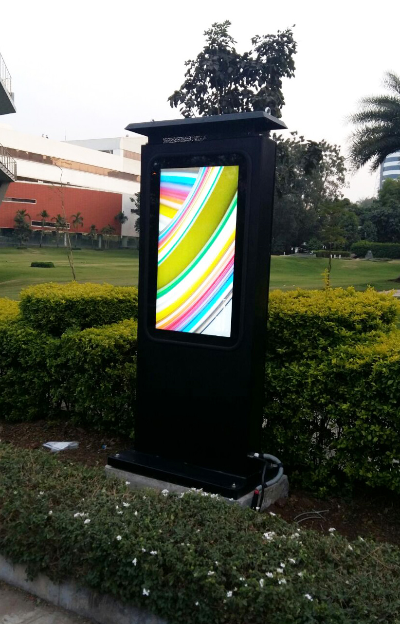 Unique solution for go digital drive of Government of India. The complete outdoor solution having IP 65 & IP 55 rating durable metal enclosures. It is our mission to improve the user experience & information, knowledge sharing more easy with the help of Innovation & Technology. Specially designed solution to run 24 x 7 in all environments & climate conditions. Complete digital with LCD having brightness of 2000 nits & more. High resolution 4K, 8K for better view & clarity. Direct integration with all Operating System based applications such as IOT.